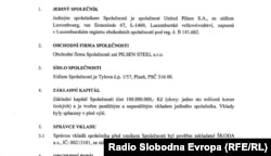 Osnivački akt kompanije Pilsen steel, oktobar 2010. preko United Pilsen S.A. iz Luksemburga iz službenog Registra Češke Republike