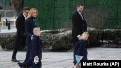 Sin novoizabranog predsjednika, Eric Trump, i supruga Lara, kćer Carolina i sin Luke, dolaze na službu u crkvi Svetog Ivana.