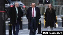 Bivši Trumpov advokat Rudy Giuliani dolazi na crkvenu službu.