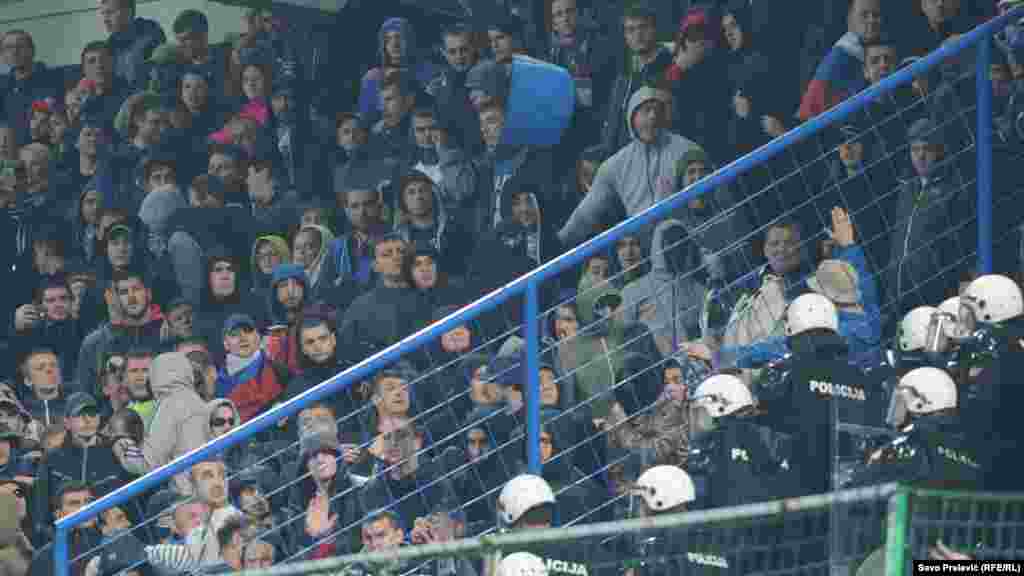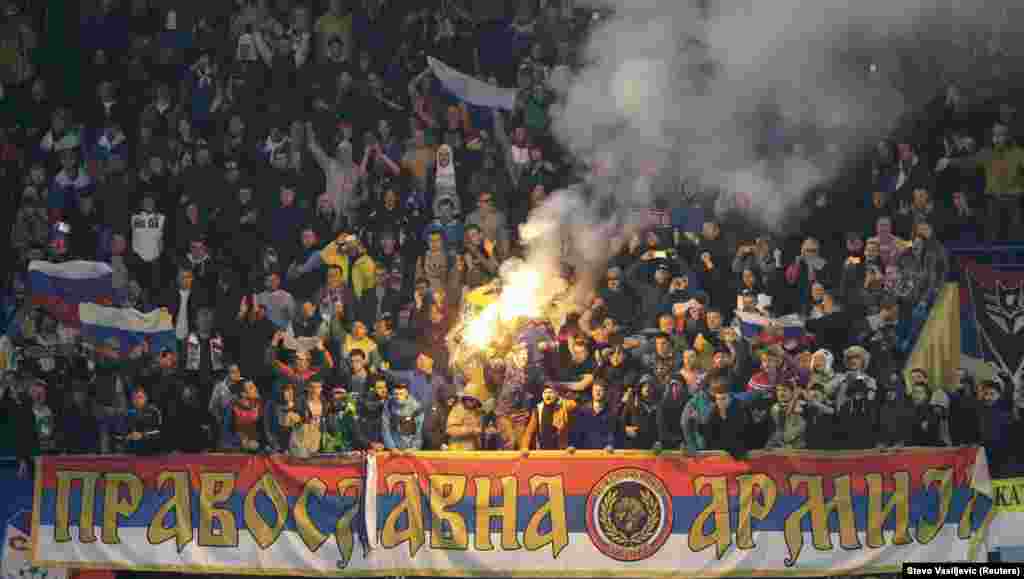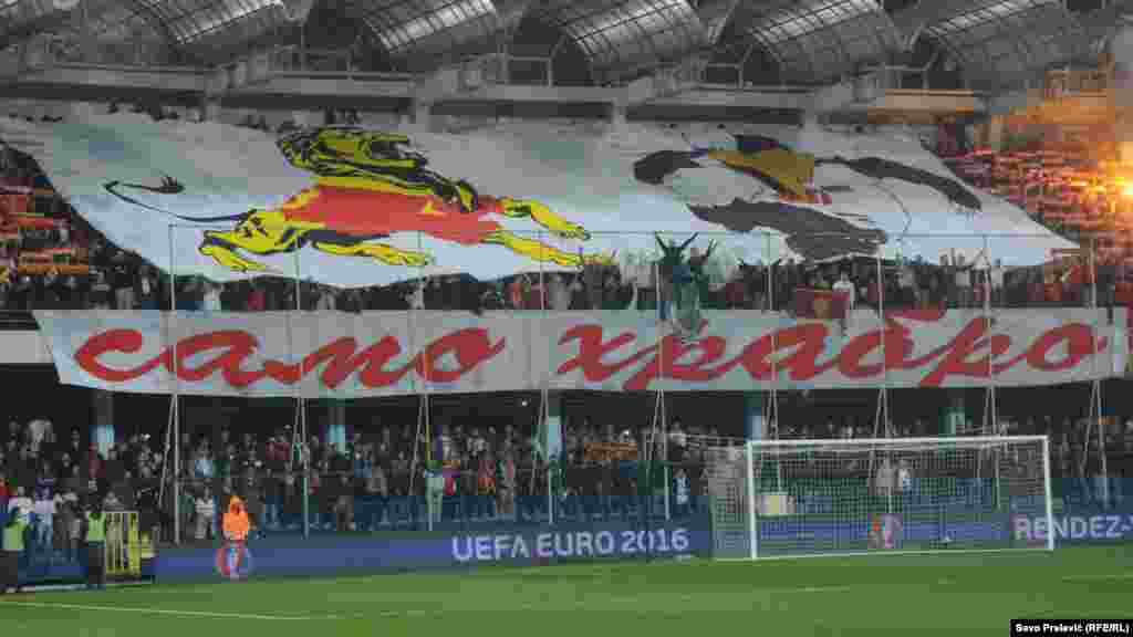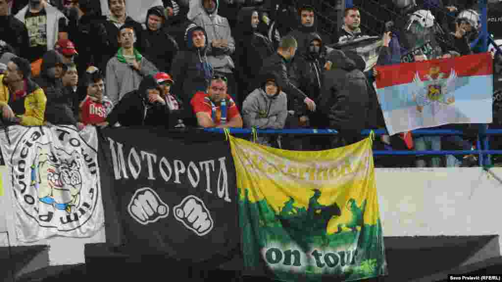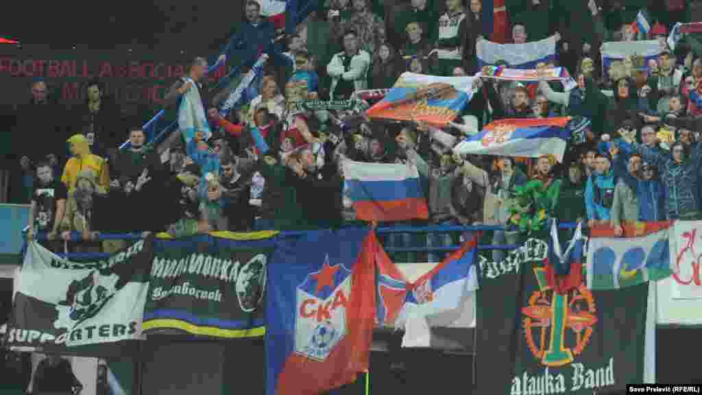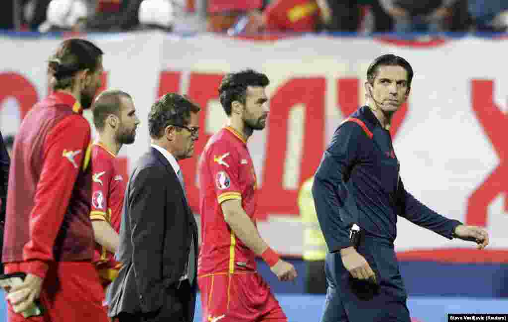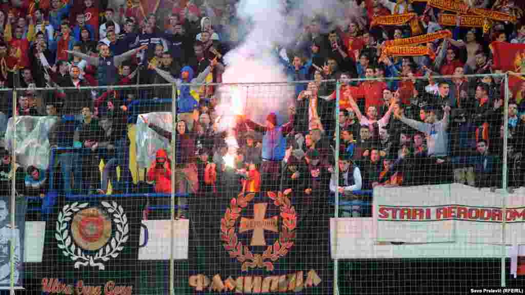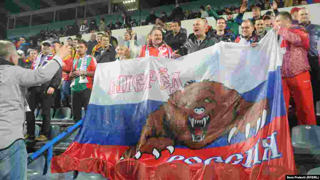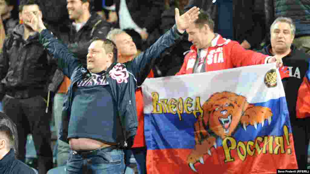 Kvalifikacioni meč Crna Gora-Rusija za Evropsko fudbalsko prvenstvo prekinut je u 68. minuti zbog ubacivanja predmeta na teren. Na početku utakmice golman Rusije, Igor Akinfejev, pogođen je bakljom u glavu.