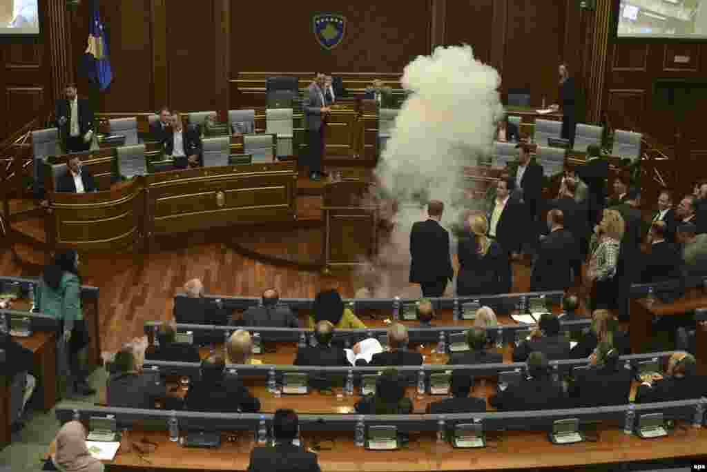 Kosovska Skupština u četvratk je okončala sjednicu nakon što je uz zvižduke, prsakanje vodokm i bacanje suzavca od strane poslanika opozicije, usvojila niz nacrta zakona. Sjedinjene Države i Evropska unija su snažno osudili incident.