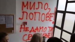 Lider Dveri Boško Obradović je na zidu crnogoske ambasade ispisao grafit "Milo, lopove! Ne damo ti svetinje".