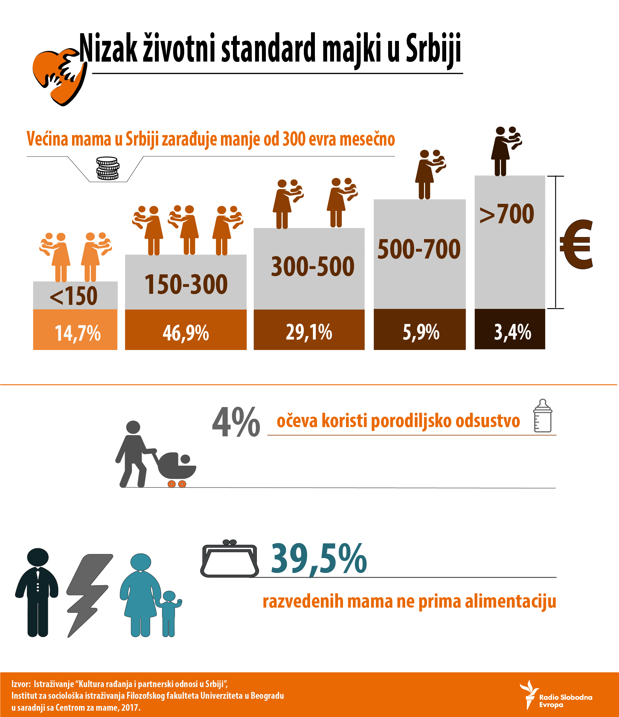 Majke u Srbiji većinom zarađuju manje od 300 evra mesečno, dok gotovo 40% razvedenih mama ne prima alimentaciju. (Sonja Gočanin)