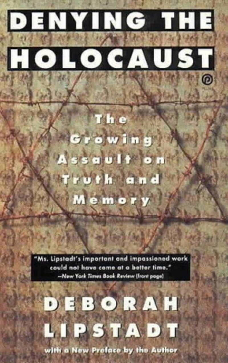 Lipstad: Ja sam 1993. objavila knjigu "Osporavanje Holokausta" (Denying the Holocaust). Nekoliko stranica posvetila sam Dejvidu Ajrvingu, kao jednom od vodećih negatora Holokausta. Napisala sam da on zna istinu, ali iskrivljuje činjenice, tumači ih zlonamerno kako bi potvrdio svoj ideološki antisemitski stav o negaciji Holokausta. Dakle, on je jedan od ključnih ličnosti u falsifikovanju i stvaranju laži o Holokaustu. Ajrving me je tužio pred britanskim sudom za klevetu (1998. godine). Prema