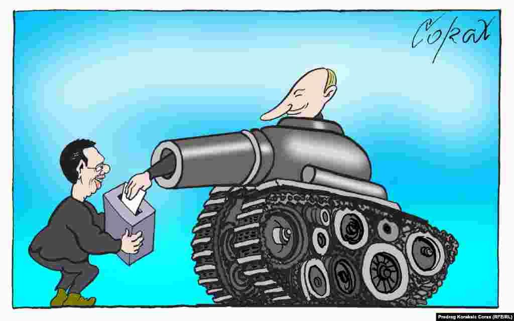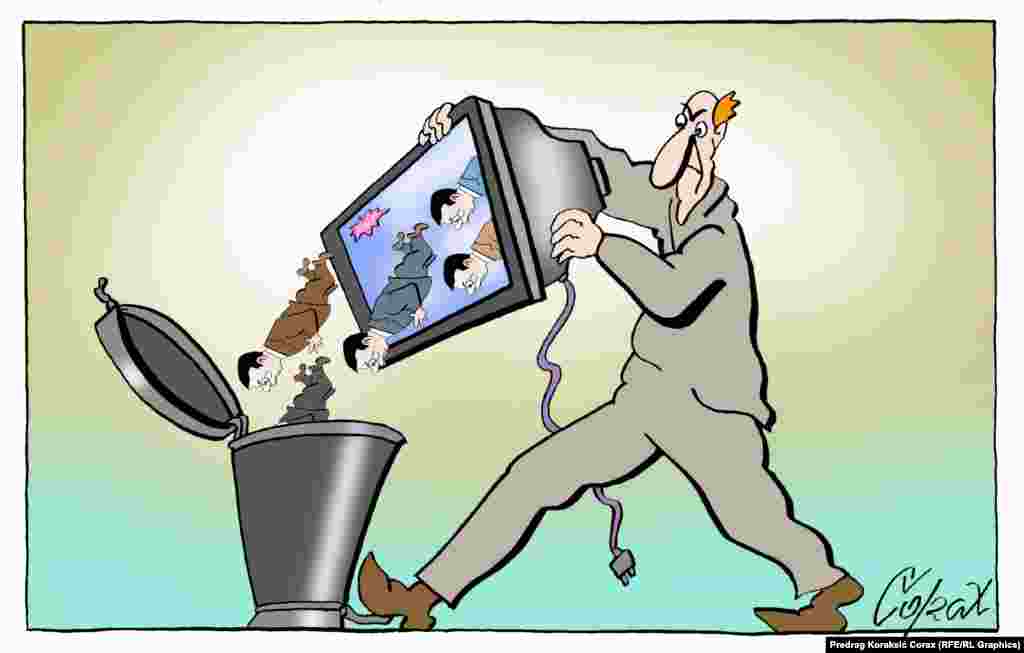 Jedan od najprepoznatljivijih karikaturista u Srbiji Predrag Koraksić Corax stalni je saradnik Radija Slobodna Evropa i jednom sedmično objavljujemo njegov komentar političkog života Srbije bez reči.