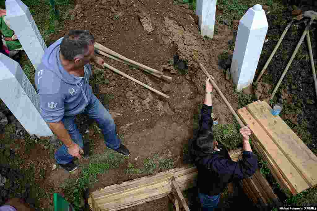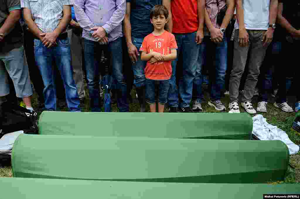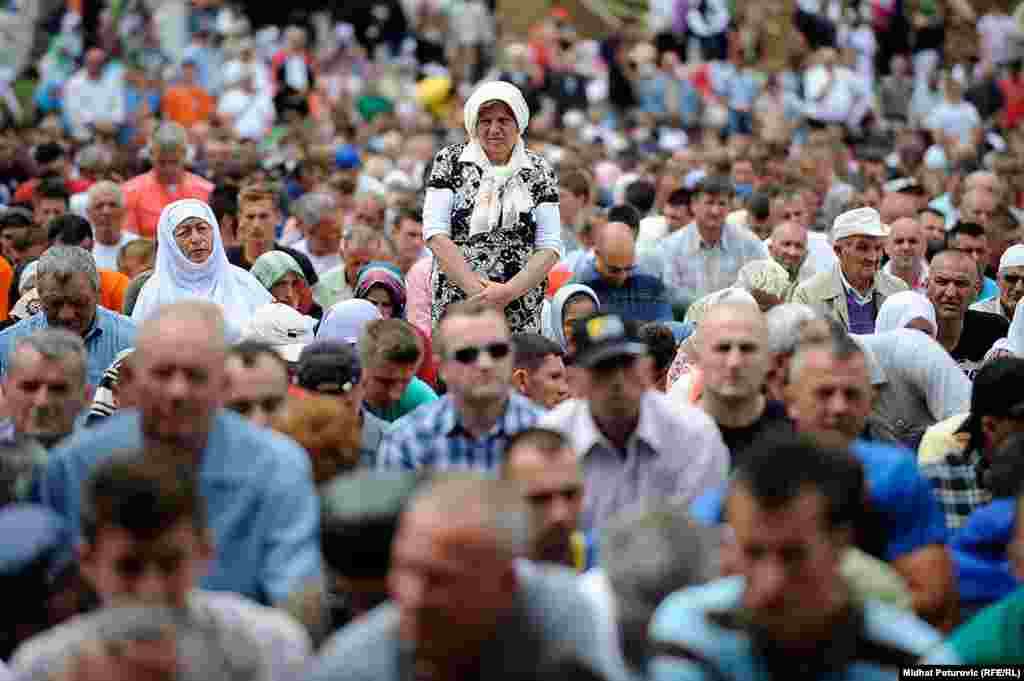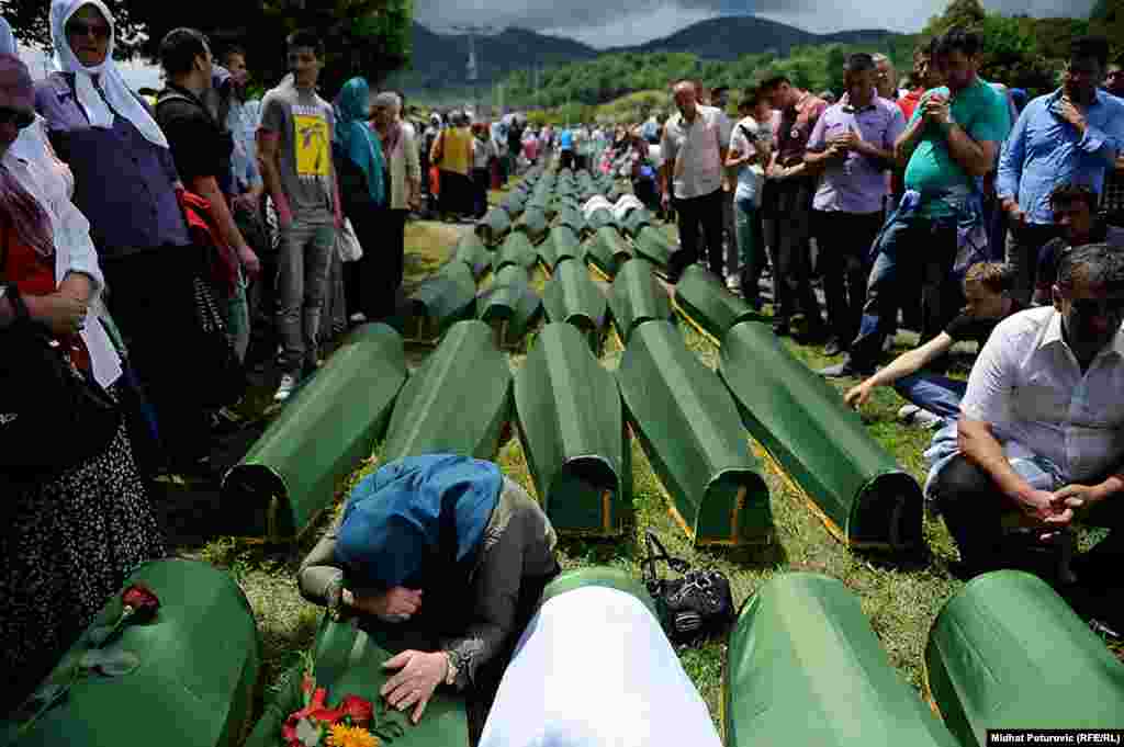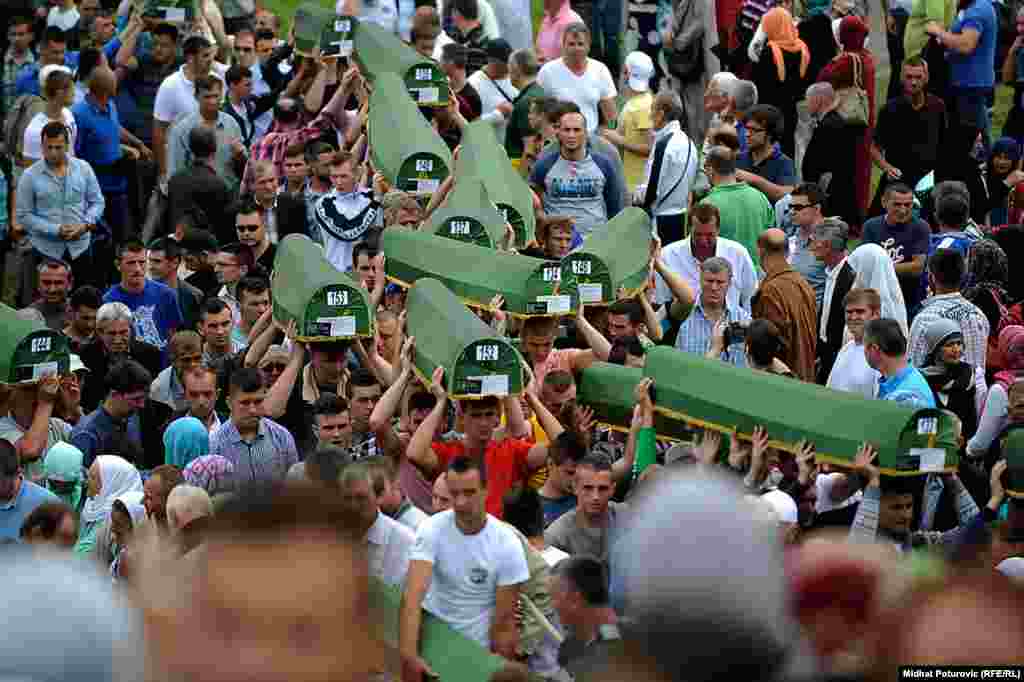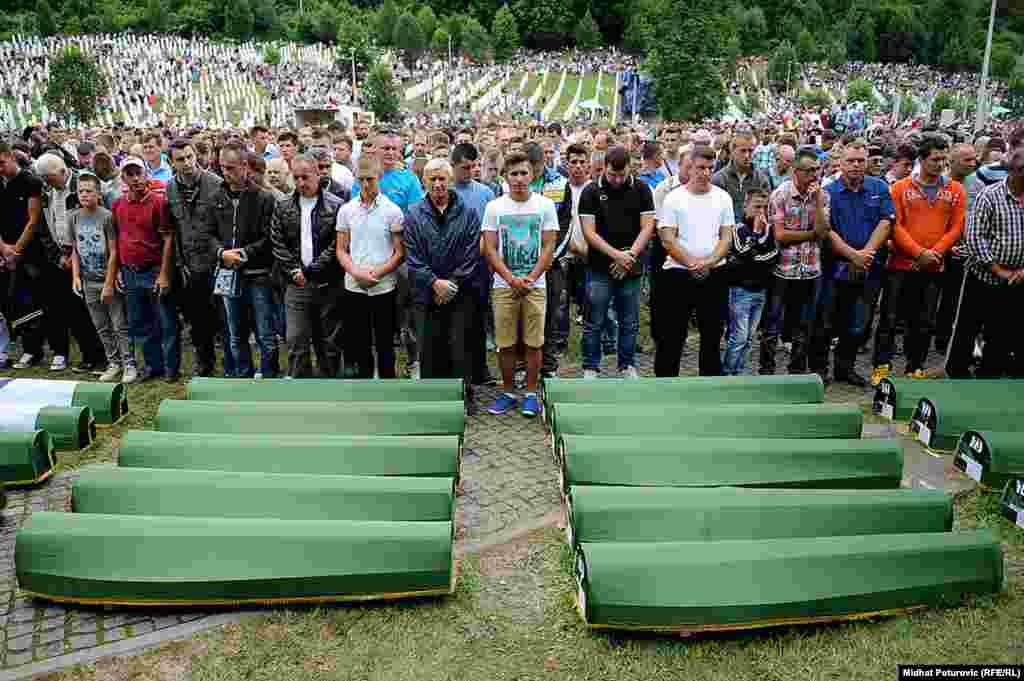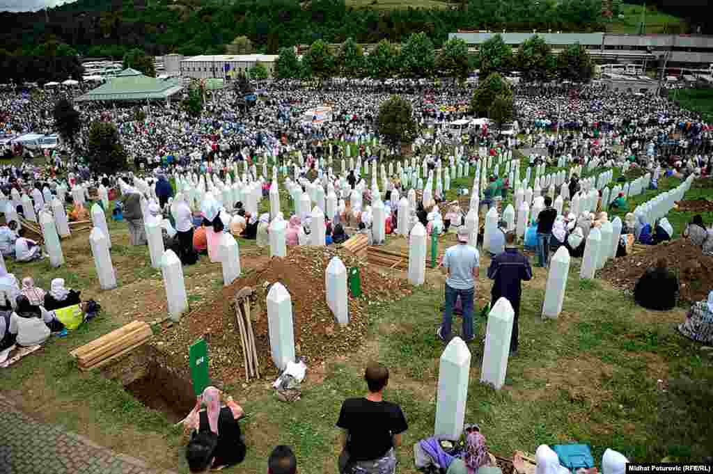 U prisustvu nekoliko hiljada ljudi u petak je u Memorijalnom centru Potočari održana komemoracija tokom koje su ukopani posmrtni ostaci još 175 Bošnjaka, žrtava srebreničkog genocida. Prethodnih godina je u ovom memorijalnom centru ukopano 6.066 žrtava genocida. RSE/Foto: Midhat Poturović