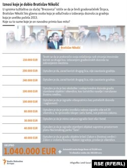 Bivši gradonačelnik Štrpca Bratislav Nikolić osumnjičen je da je primio više od milion evra mita od građevinskih kompanija i investitora.