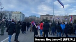 Isred Skupštine Srbije okupilo se više desetina građana protiveći se planu Evropske unije za normalizaciju odnosa Srbije i Kosova.