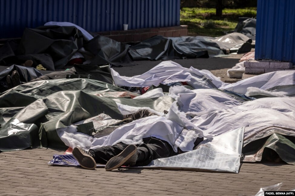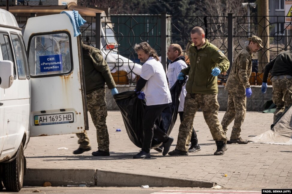 Vojska sklanja tela ubijenih civila sa stanice u Kramatorsku. Predsednik Ukrajine Volodimir Zelenski je rekao da “u nedostatku snage i hrabrosti da nam se suprotstave na bojnom polju" ruske snage "cinično uništavaju civilno stanovništvo" i dodao da, ako ne bude zaustavljeno, “ovo zlo” nikada neće prestati.