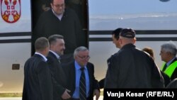Za to vreme na platou ispred aerodroma bilo je nekoliko stotina građana. Mnogi su držali partijske zastave, a među okupljenima je bilo i onih koji su u vreme rata 1999. godine bili deca.