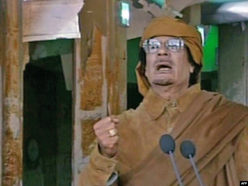 Snimak Moamera Gadafija na televiziji nakon zapaljivog govora u kom je zapretio demonstrantima, Tripoli, 22. februar 2011.