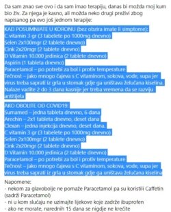 Svoju terapiju s virtuelnim prijateljima dijele oni koji su bili pozitivni na virus, a nisu medicinski radnici. Tako su društvene mreže, već prepune različitih teorija zavjere o korona virusu, od onih da nije stvaran do onih koje govore da su maske, baš kao i držanje fizičke distance, ugrožavanje individualnih sloboda, postale i platforma na kojoj laici savjetuju o dobrim i lošim lijekovima.