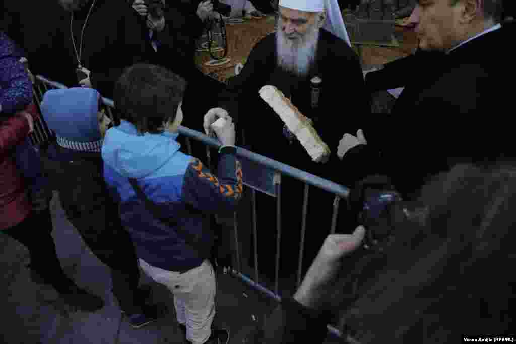 Lomljenju česnice ispred Hrama Svetog Save prisustvovao je poglavar Srpske pravoslavne crkve Irinej.