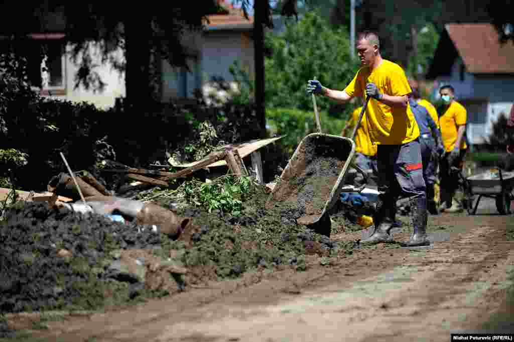 U Maglaj su stigle stotine volontera da pomognu u saniranju posljedica poplava i klizišta u tom gradu. Iz naselja Željezno Polje iseljeno je više od 3.000 ljudi. Čini se sve kako ne bi došlo do zaraza i epidemija, a stanovništvu se dostavlja pomoć. 20.5.2014. RSE foto/Midhat Poturović