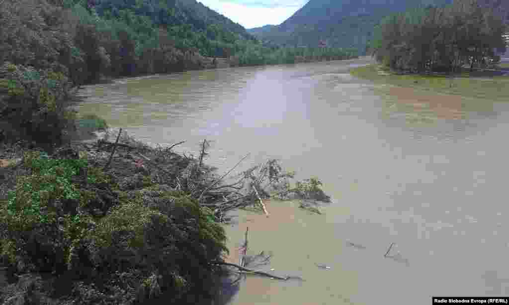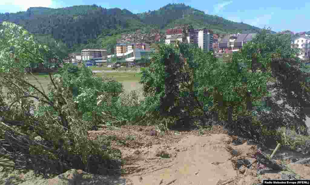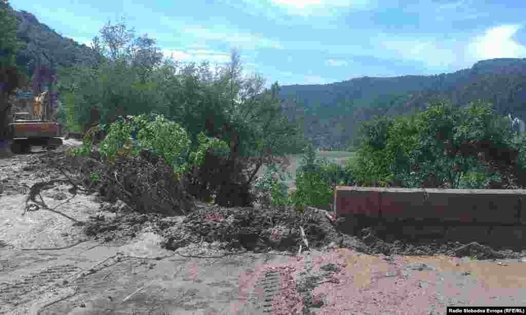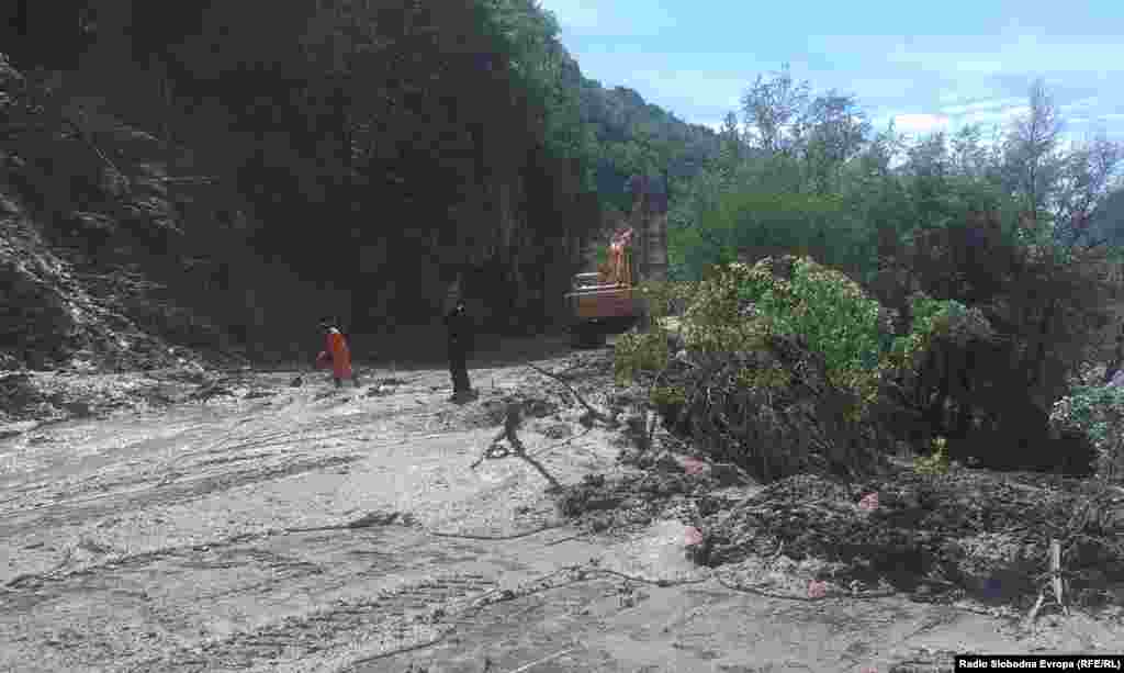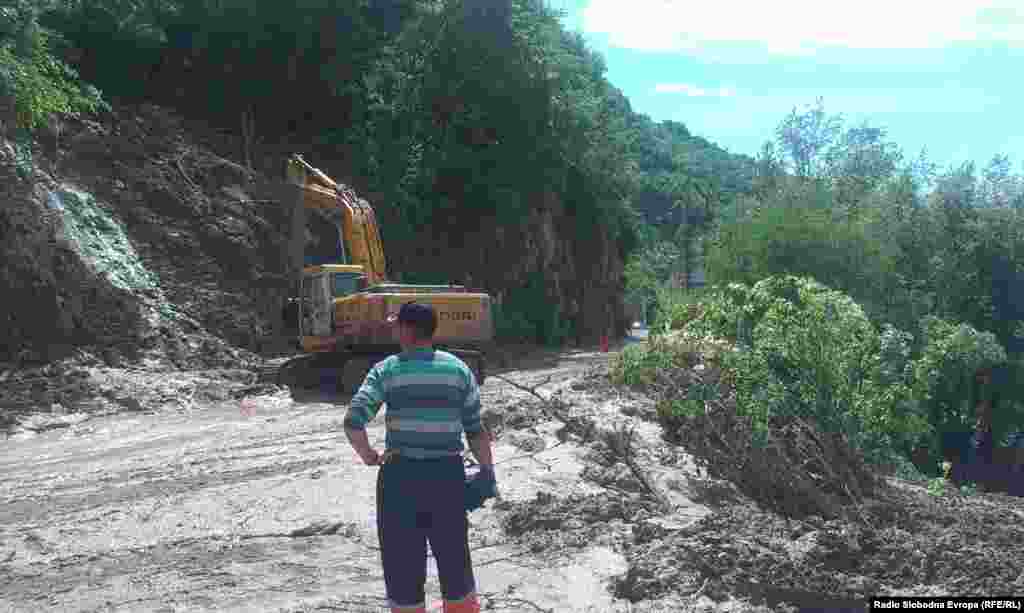 Nakon nezapamćenih kiša proradili su odroni i klizišta. Najveće od, kako se procenjuje 60 klizišta, preseklo je put između centra Malog Zvornika i dela u kome živi najveći deo stanovništva, kao i Stari most koji vodi ka Zvorniku u BiH. 20.5.2014. RSE foto / Ognjen Zorić