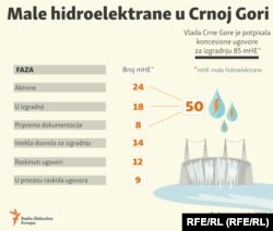 Prema rezultatima monitoringa NVO Green Home, od 2008. do danas je ugovorom o koncesiji u Crnoj Gori zaključena gradnja 53 MHE na ukupno 33 vodotoka, a trenutno je u radu 14.