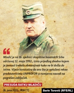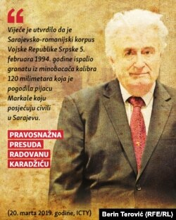 Radovan Karadžić, bivši predsjednik Republike Srpske, pred Mehanizmom za međunarodne krivične sudove (MMKS), koji je naslijedio Međunarodni krivični sud za bivšu Jugoslaviju, pravosnažno je 20. marta 2019. godine osuđen na doživotnu kaznu zatvora.