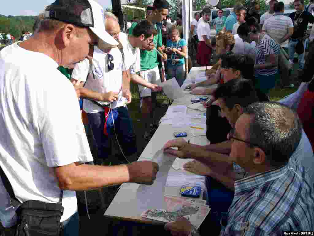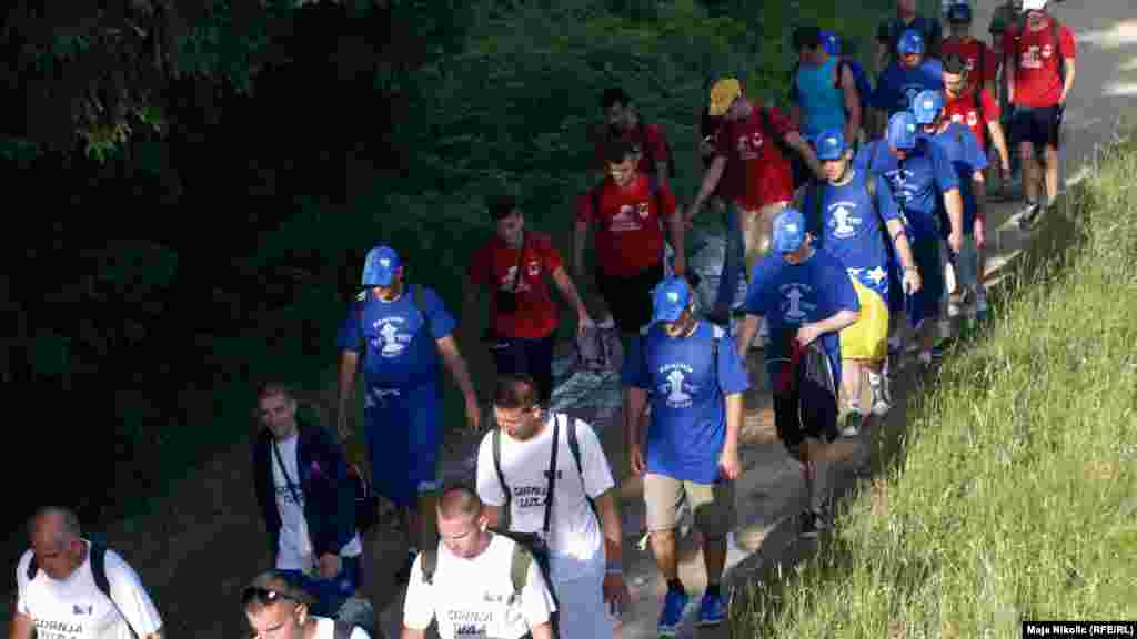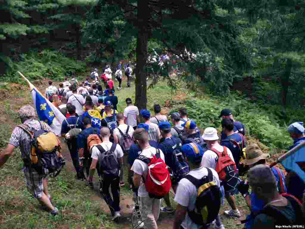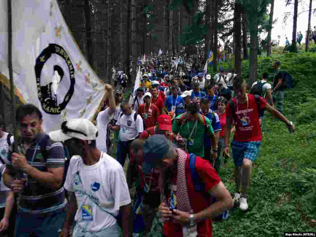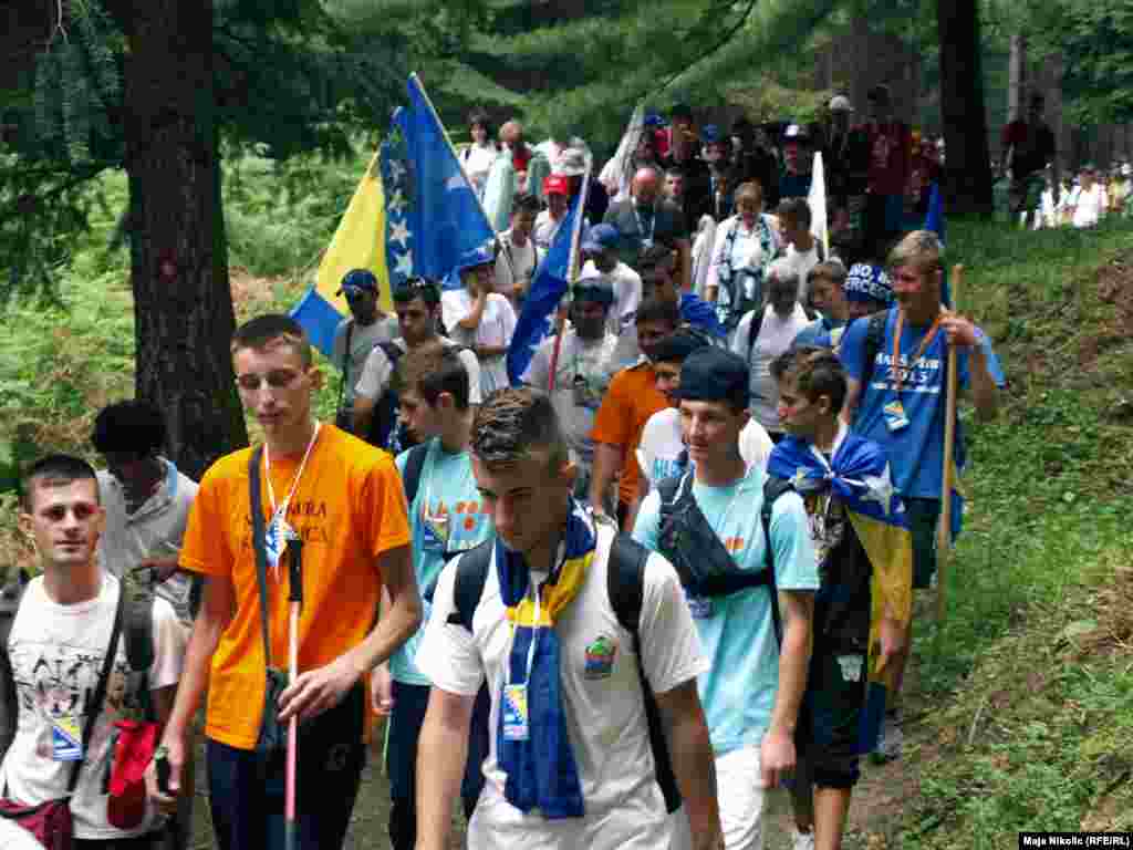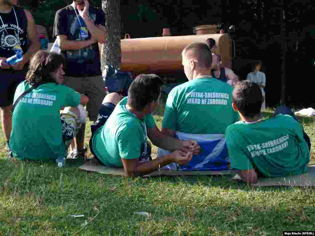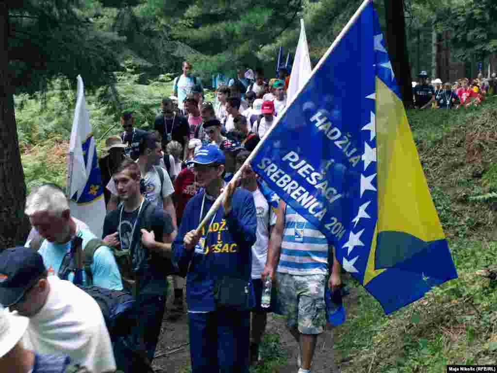Učesnici su na deseti Marš mira 2014. krenuli iz Nezuka kod Sapne, mjesta gdje su se u julu 1995. Srebreničani probili iz obruča Vojske RS. Prema Potočarima, gdje će odati počast žrtvama srebreničkog genocida krenuli su i biciklisti iz Bihaća. 8.7.2014. RSE foto / Maja Nikolić