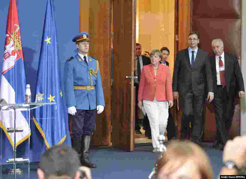 Nemačka kancelarka Angela Merkel posetila je Beograd, a na aerodromu "Nikola Tesla" je dočekao premijer Aleksandar Vučić. Merkel je tokom posete rekla je da Beograd može da računa na podršku Berlina na putu ka Evropskoj uniji. 8.juli 2015