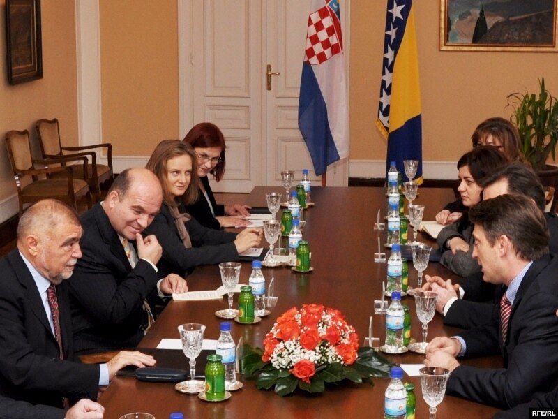 U nizu susreta Mesić se prvo sastao sa predsjedavajućim i članom Predsjedništva BiH, Željkom Komšićem i Harisom Silajdžićem. Komšić i Silajdžić zatražili su da Hrvatska da podršku Bosni i Hercegovini na putu prema Evropskoj uniji i NATO savezu.