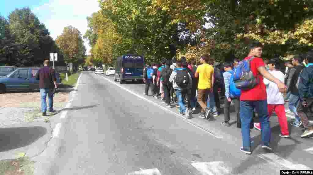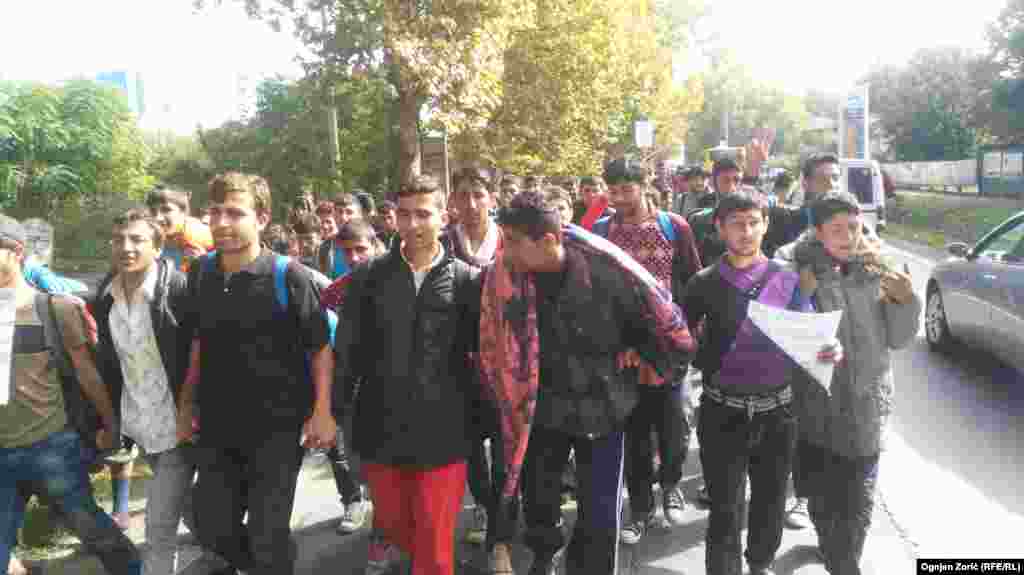 Migranti koji su u utorak prepodne protestovali kod autobuske stanice u centru Beograda, uputili su se ka granici sa Mađarskom pešice. Grupa od oko 300 migranata je krenula preko Novog Beograda ka severu Srbije, a prati ih policija.