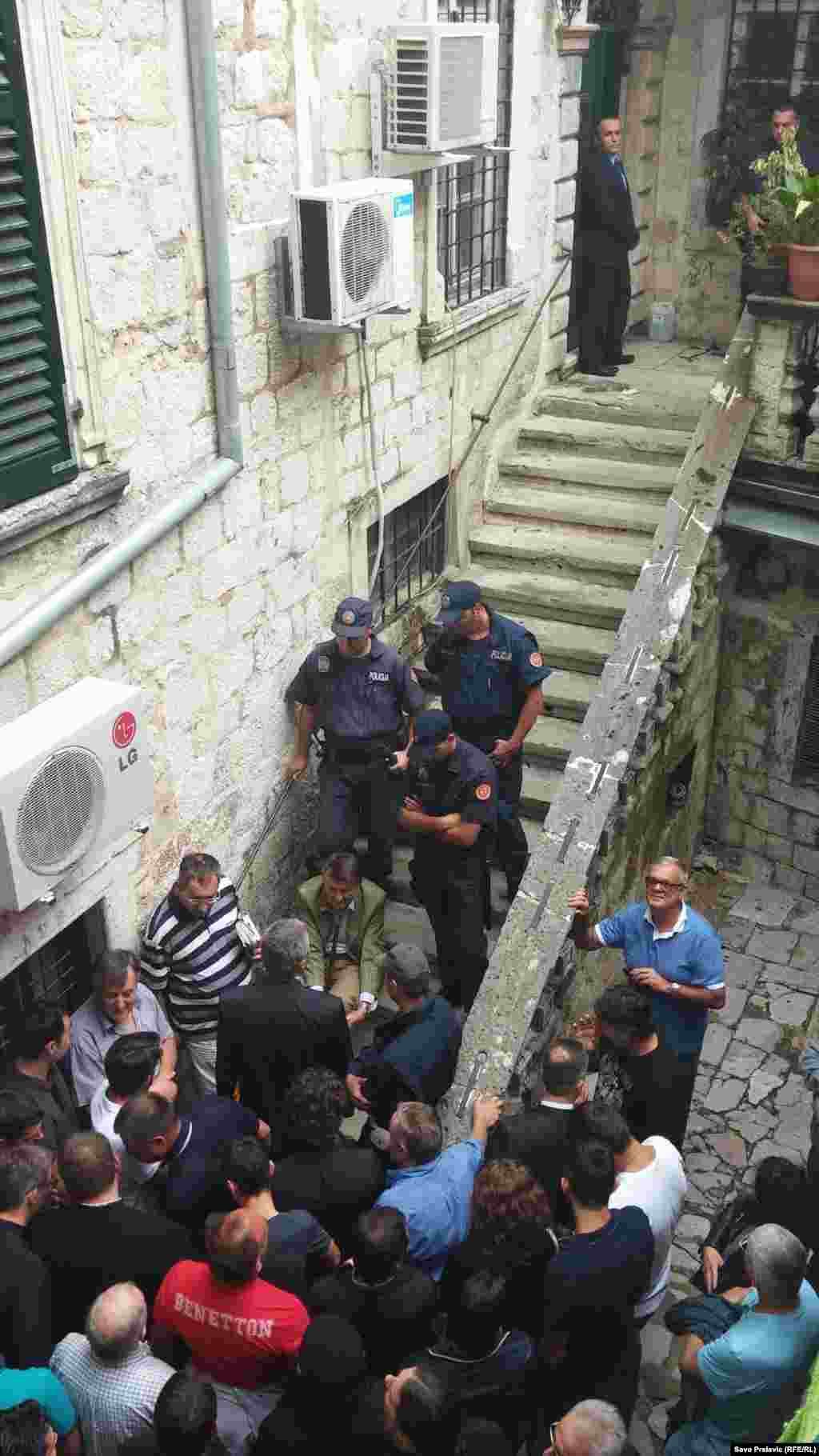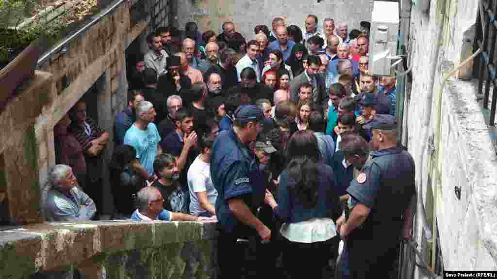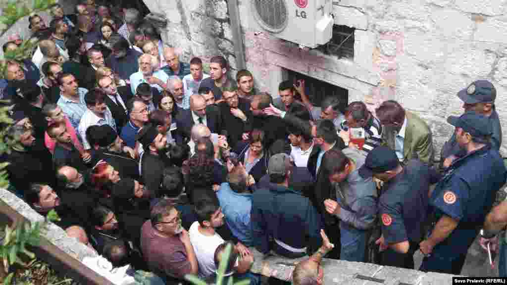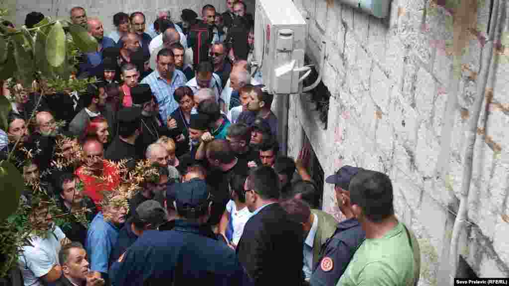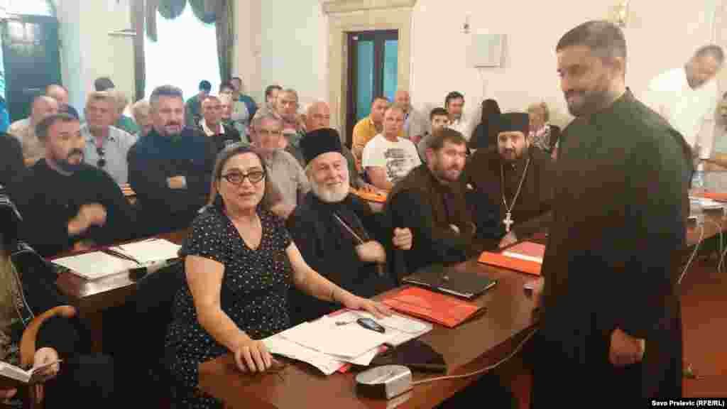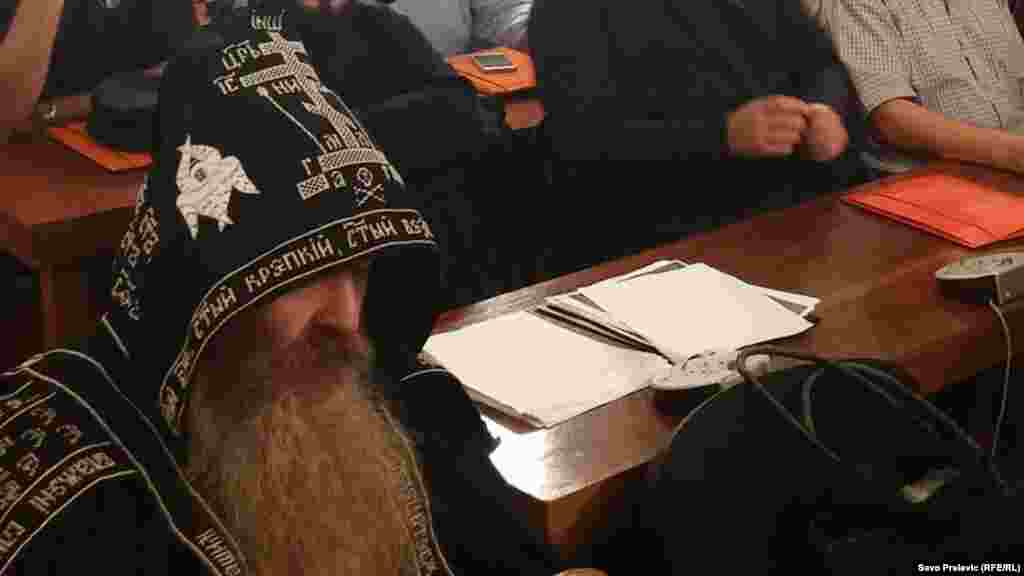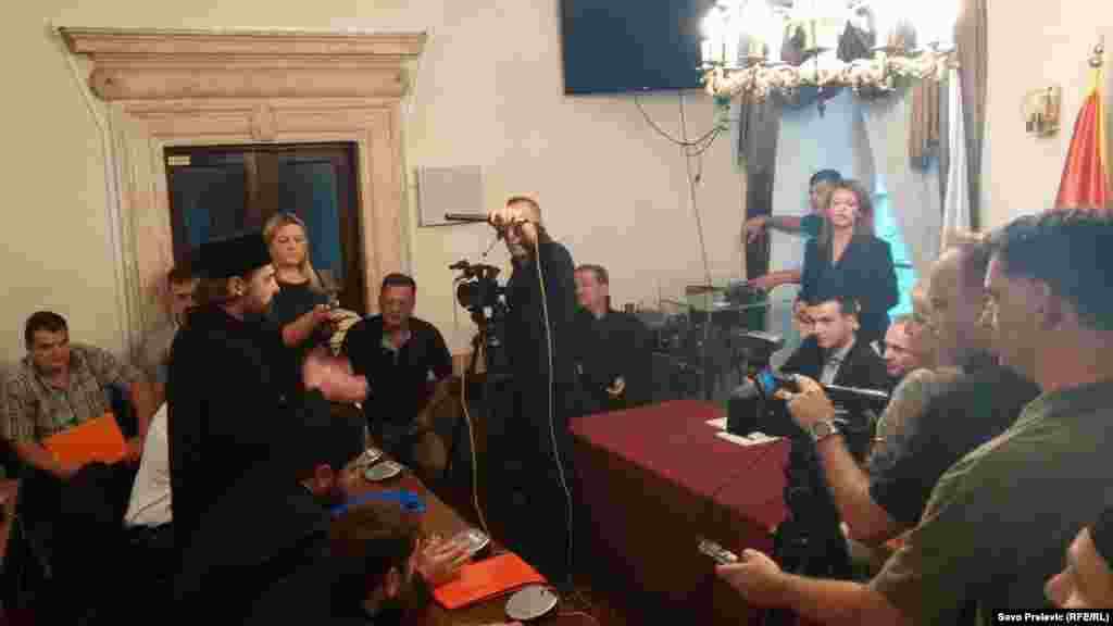 Pristalice Srpske pravoslavne crkve su, nakon sličnog incidenta u Bijelom Polju, i u Kotoru nasrnuli na mitropolita Crnogorske pravoslavne crkve Mihaila koga su salvom uvredljivih povika spriječili da učestvuje u javnoj raspravi nacrtu zakona o vjerskim slobodama. 10.9.2015. RSE foto: Savo Prelević