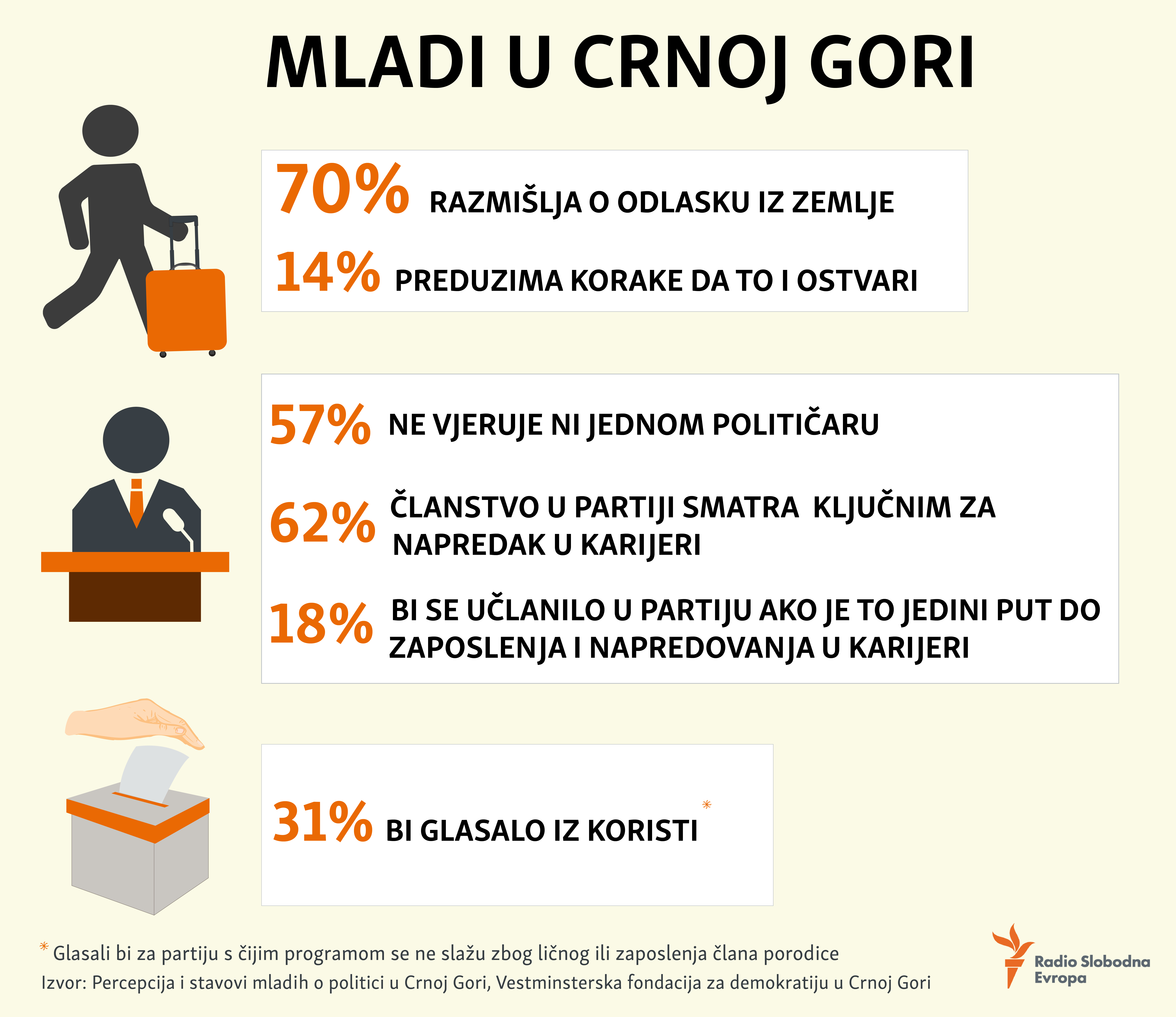 Sedamdeset odsto mladih u Crnoj Gori razmišlja o odlasku iz zemlje.