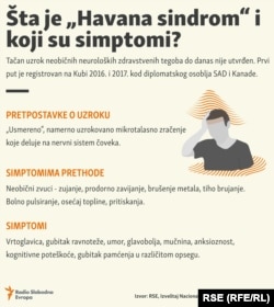 "Pulsna elektromagnetna energija, posebno u opsegu radiofrekvencija, uvjerljivo objašnjava bol u ušima, vrtoglavicu i druge simptome kod nekih koji pate od bolesti o kojoj su prvi put izvijestili američki diplomati u glavnom gradu Kube 2016. godine", saopćila je američka vlada.