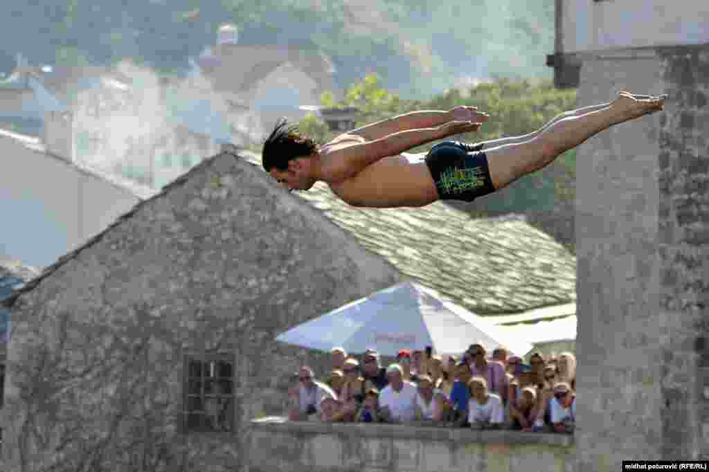 U Mostaru su završeni 450. tradicionalni skokovi sa Starog mosta. Skoro 60 skakača iz cijele regije takmičilo se u dvije kategorije - skok na glavu i skok na noge. Pobjednik u kategoriji skok na glavu je Lorens Listo iz Mostara, kom je ovo deseta pobjeda u skokovima sa Starog mosta. U kategoriji skok na noge pobijedio je dvadesetdvogodišnji Mostarac Edi Fink. Ovo je njegova prva pobjeda.
