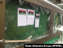 Razbijena stakla na tabli ambasade Libije prilikom protesta u Beogradu 22. februara 2011. Foto: Ognjen Zorić