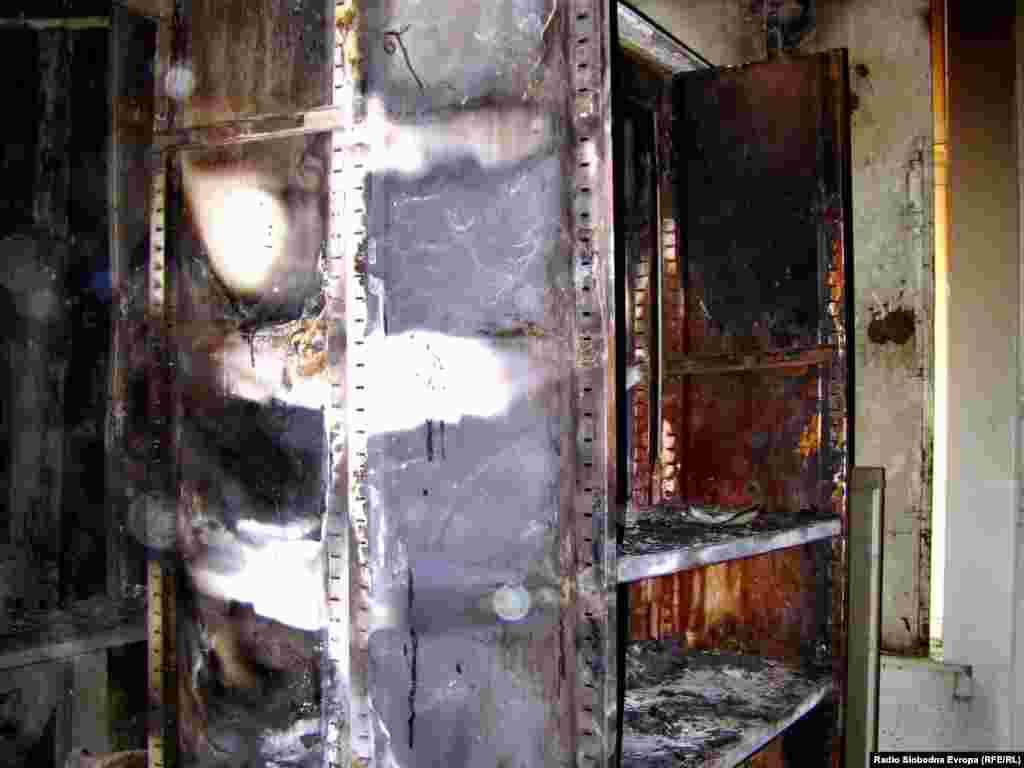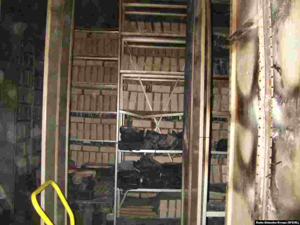 Tokom protesta u Sarajevu izgorio je dio Arhiva BiH u kojem se čuva najstarija i najvažnija arhivska građa - od otomanskog perioda do kraja Drugog svjetskog rata. Prostorije Arhiva BiH fotografisane privi put nakon paljevine. 21.2.2014. RSE foto/Ivana Bilić