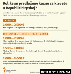 To je rezultat godinu dana primjenjivanja izmjena Krivičnog zakona Republike Srpske (RS), kojima je u ovom bosanskohercegovačkom entitetu ponovo kriminalizovana kleveta.