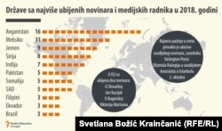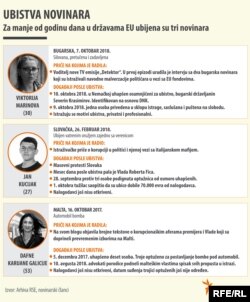 Najmanje dva novinara su ubijena 2018. godine zbog njihovog izvještavanja: Jan Kuciak u Slovačkoj i Jamal Khashoggi u Turskoj u konzulatu Saudijske Arabije. Kada se govori o smrti dva druga novinara, Viktorije Marinove u Bugarskoj i Maksima Borodina u Rusiji, izražena je zabrinutost zbog temeljitosti istraga ubistava i okolnosti koje su dovele do ubistva.