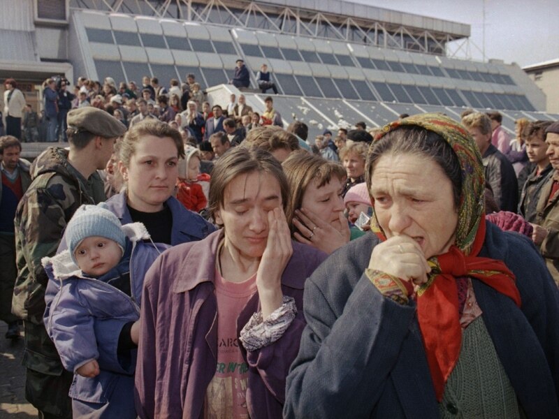 Nitko izgleda nije spreman razmišljati o slikama koje prikazuju 25000 izbjeglica koje traže pomoć od Holandskog bataljona, a "njihovi momci" ih izručuju Ratku Mladiću.