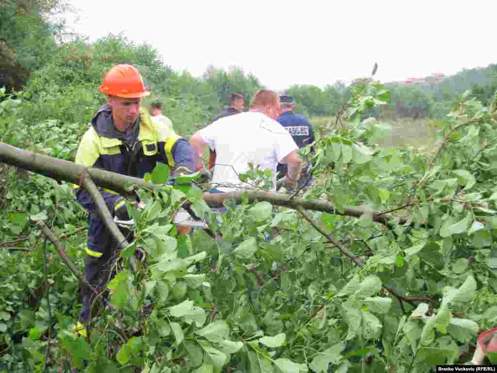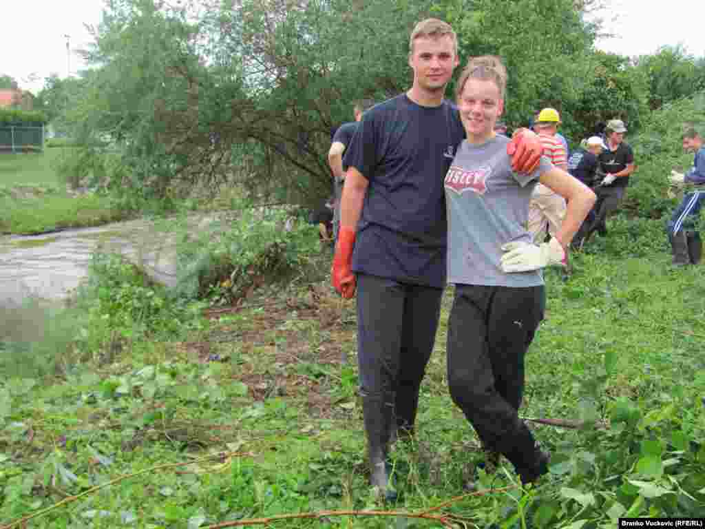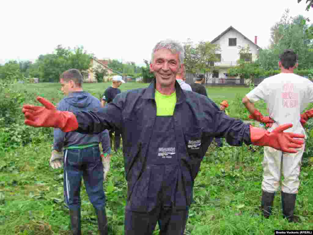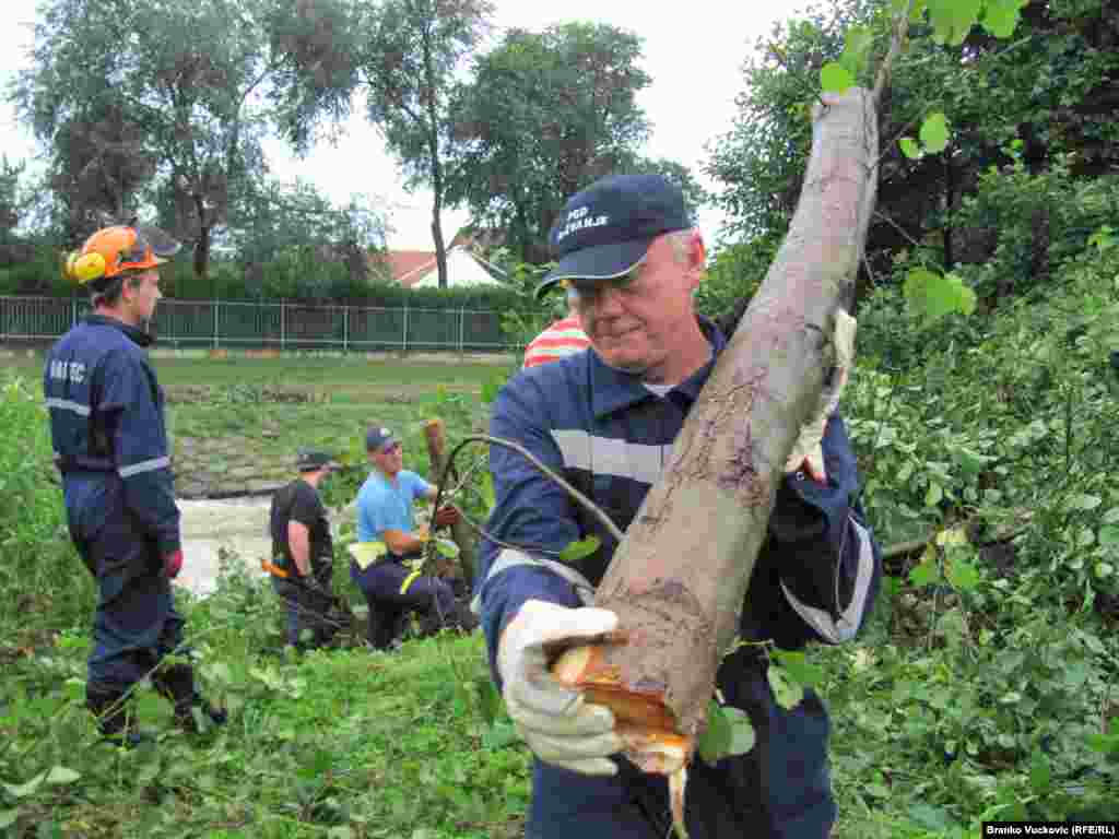 Pedeset akcijaša iz Slovenije, Makedonije i Srbije, kako nekadašnjih, tako i onih iz mlađe generacije, okupili su se kako bi radili na uređenju korita reka, sanaciji oštećenih puteva i pomogli gde bude potrebno. Avgust 2014. RSE foto / Branko Vučković