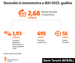Institucije nemaju točan broj ljudi koji u BiH primaju penzije zarađene u inozemstvu. Prema podacima Centralne banke BiH o novčanim transakcijama s inozemstvom, u tu svrhu je uplaćeno oko 695 miliona eura tokom 2023. godine.