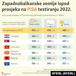 Većina učenika iz država Zapadnog Balkana je ispod prosjeka zemalja Organizacije za ekonomsku saradnju i razvoj (OECD) u matematičkoj, čitalačkoj i naučnoj pismenosti, pokazali su najnoviji podaci PISA testa za 2022. godinu, predstavljeni 5. decembra.