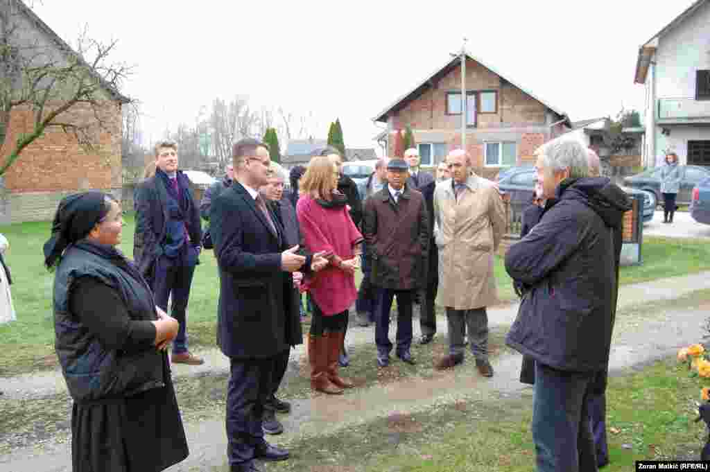 Otpravnik poslova Europske unije u BiH Renzo Daviddi i ambasadori šest zemalja EU akreditirani u Sarajevu obišli su selo Vidovice na sjeveru Bosne, gdje zemlje članice EU ulažu sredstva za obnovu 50-tak obiteljskih kuća stradalih u proljetnim poplavama. 3.12.2014. RSE foto / Zoran Matkić