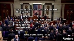 Nakon osam sati rasprave u glasanju po partijskoj liniji, prvu tačku optužnice zloupotreba položaja podržalo je 230 kongresmena, dok je 197 glasalo protiv. Dvojica članova Demokratske stranke takođe nisu podržala impičment.