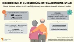 U Srbiji je u gerontološkim centrima i domovima za stare, prema poslednjim podacima, prisustvo virusa COVID-19 potvrđeno kod 312 korisnika i 70 zaposlenih u ovim ustanovama.