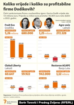 Ministarstvo financija SAD-a je saopćilo da je sankcioniralo "Prointer ITSS", "Infinity Media", "K-2 Audio Company", "Sirius 2010", "Una World" i "Kaldera Company", jer "osiguravaju značajne izvore prihoda" porodici ranije sankcioniranog proruskog predsjednika ovog entiteta Milorada Dodika.