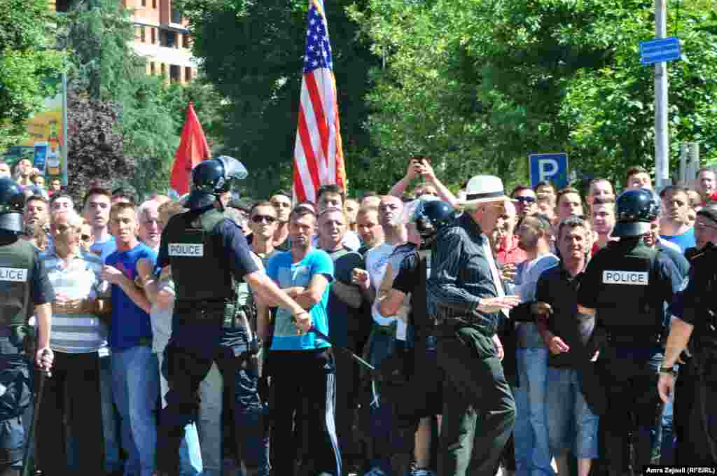Više od hiljadu demonstranata okupilo se u nedelju južno od Ibarskog mosta u Mitrovici. Oni se protive ponovnom postavljanju barikada na mostu koji deli grad na južni, uglavnom albanski, i severni, pretežno srpski deo. Uprkos tome što okupljanje obezbeđuju snage Policije Kosova, EULEX-a i KFOR-a, tokom protesta je došlo do eskalacije nasilja. Visoki zvaničnici Kosova oštro osuđuju ponovno postavljanje barikade. RSE/Foto: Amra Zejneli