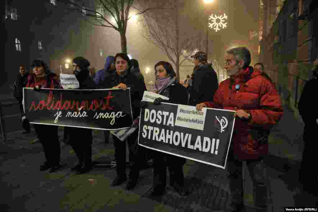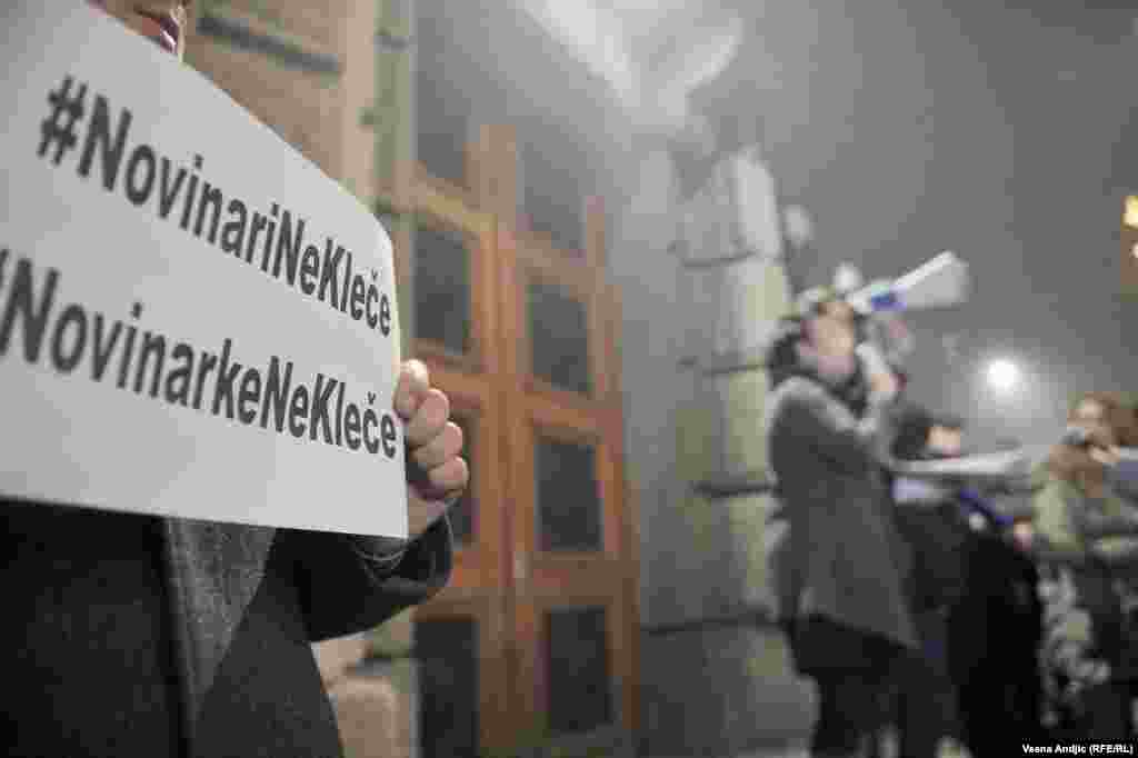 Skup pod nazivom "Novinari ne kleče" održan je u Beogradu ispred Vlade Srbije, kao i u još devet gradova Srbije. Ispred zgrade Vlade Srbije se okupilo oko 150 novinara koji su protestovali zbog toga što ministar odbrane Bratislav Gašić uprkos obećanju predsednika Vlade Aleksandra Vučića, još uvek nije smenjen.