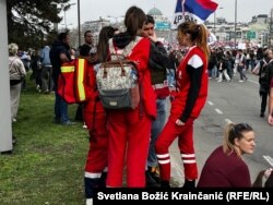 Pet punktova prve pomoći biće raspoređeno po celom gradu tokom protesta, kaže Anja za RSE, studentkinja koja radi u sklopu jedinice za prvu pomoć građanima.