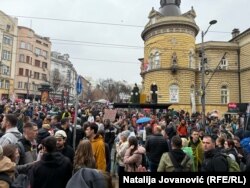 Reporterka RSE javlja da je ispred Studentskog kulturnog centra (SKC) veliki broj građana i studenata.