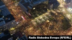 Okupljeni su upalili svetla na mobilnim telefonima.