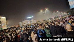 Veliki broj ljudi čeka da pređe Brankov most ka novobeogradskoj strani grada posle masovnog protesta u centru Beograda
