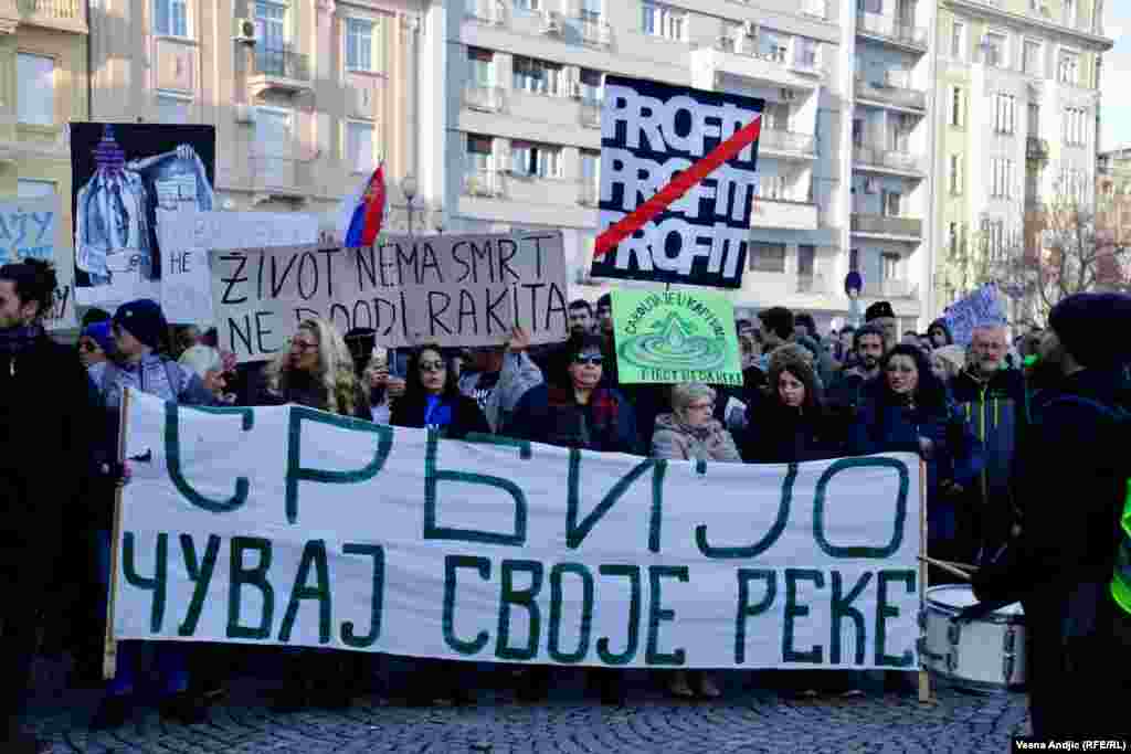 Nekoliko hiljada ljudi okupilo se u Beogradu na protestu protiv izgradnje mini hidroelektana u Srbiji pod nazivom “Odbranimo naše reke“ u organizaciji Inicijative „Odbranimo reke Stare planine“. Kolona je od Studentskog trga, gde je okupljanje počelo, pošla u protestnu šetnju do Vlade Srbije i Narodne skupštine.