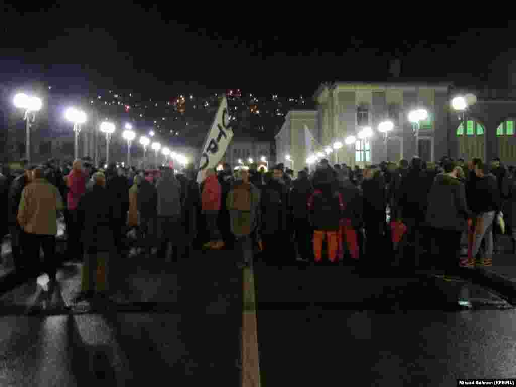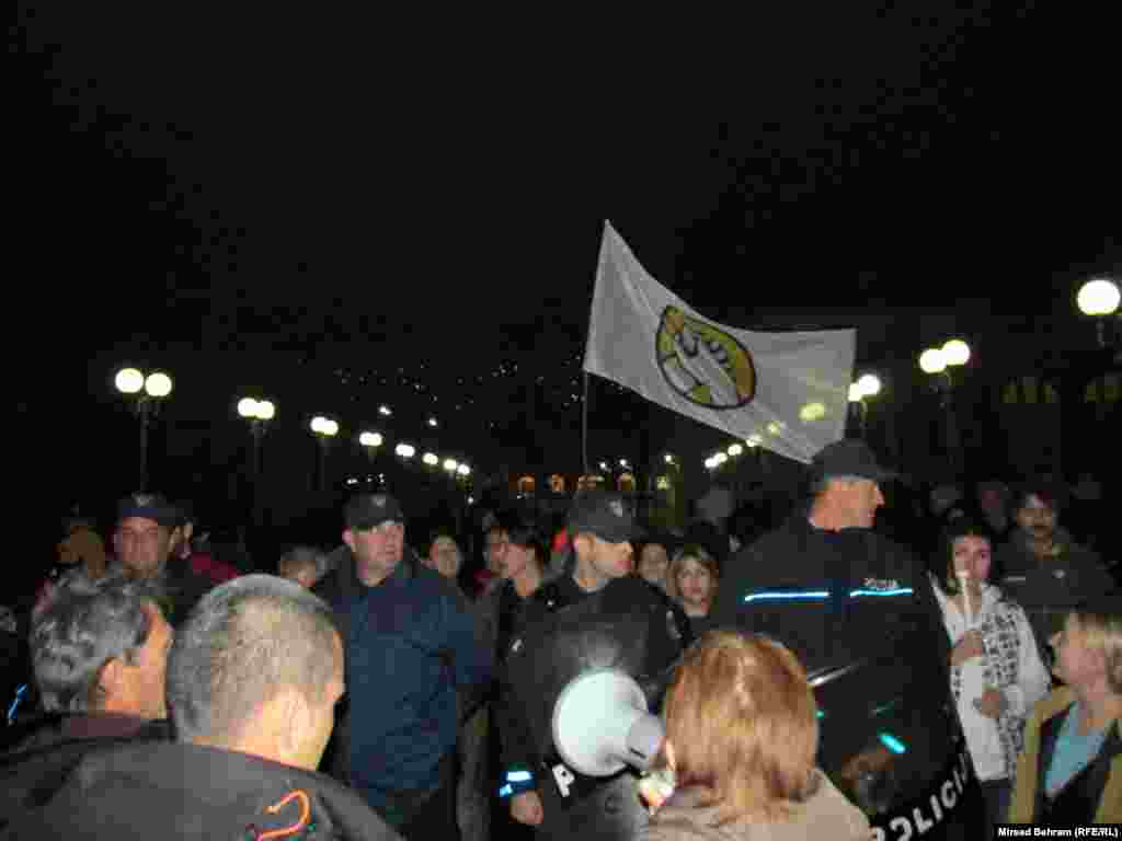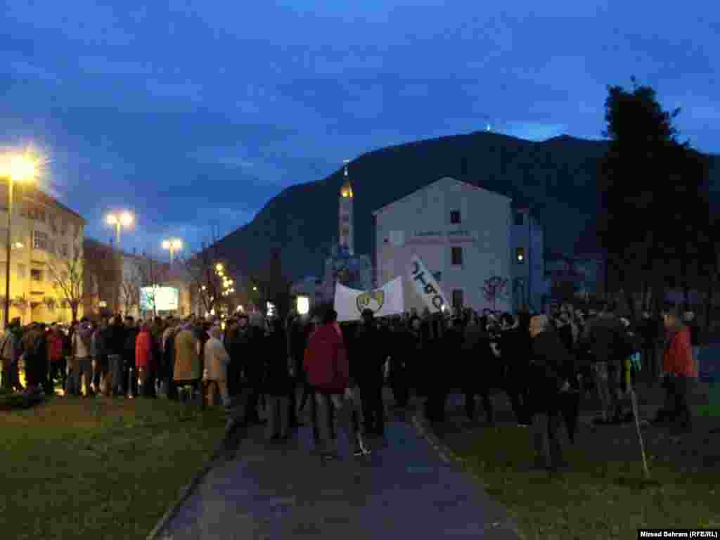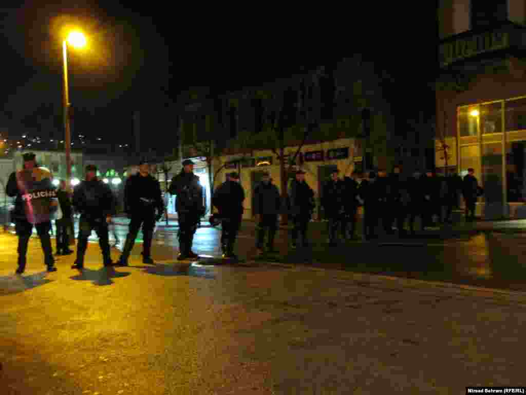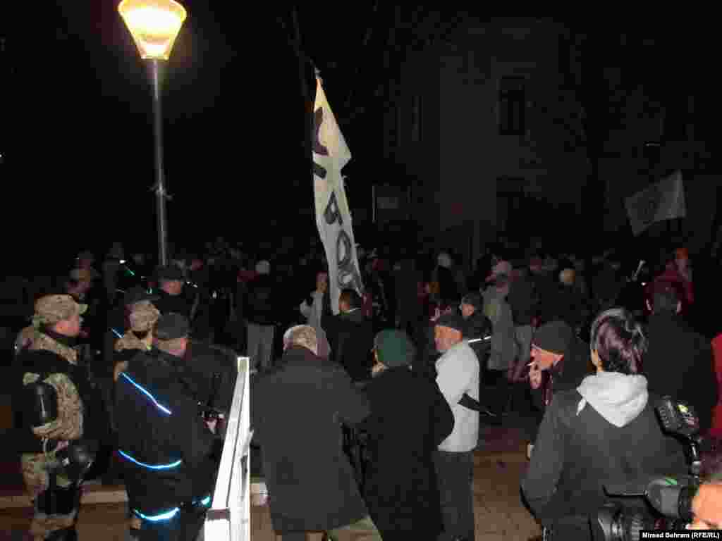 Protesti u Mostaru u utorak uveče na momente su bili na ivici većeg incidenta. Nakon što je policija prepriječila prolaz učesnicima protesta da prođu ka Trgu Hrvatskih velikana, oni su i pokušali da izvedu protestnu šetnju u više pravaca, ali su im jake snage policije to onemogućile. FOTO: Mirsad Behram
