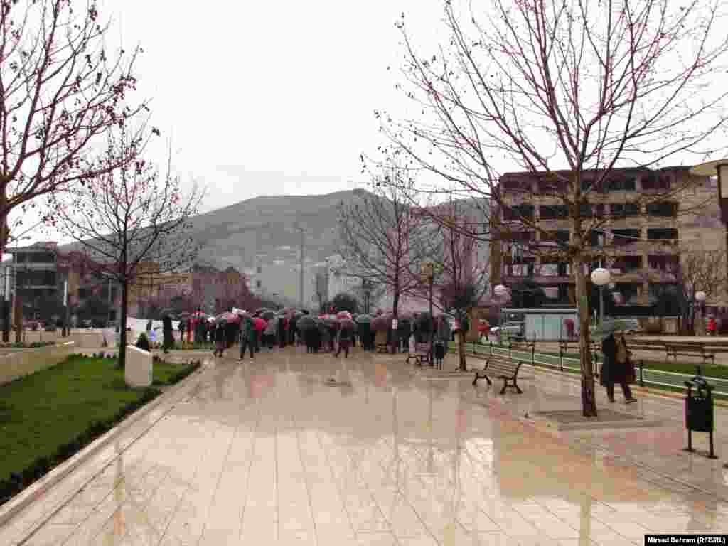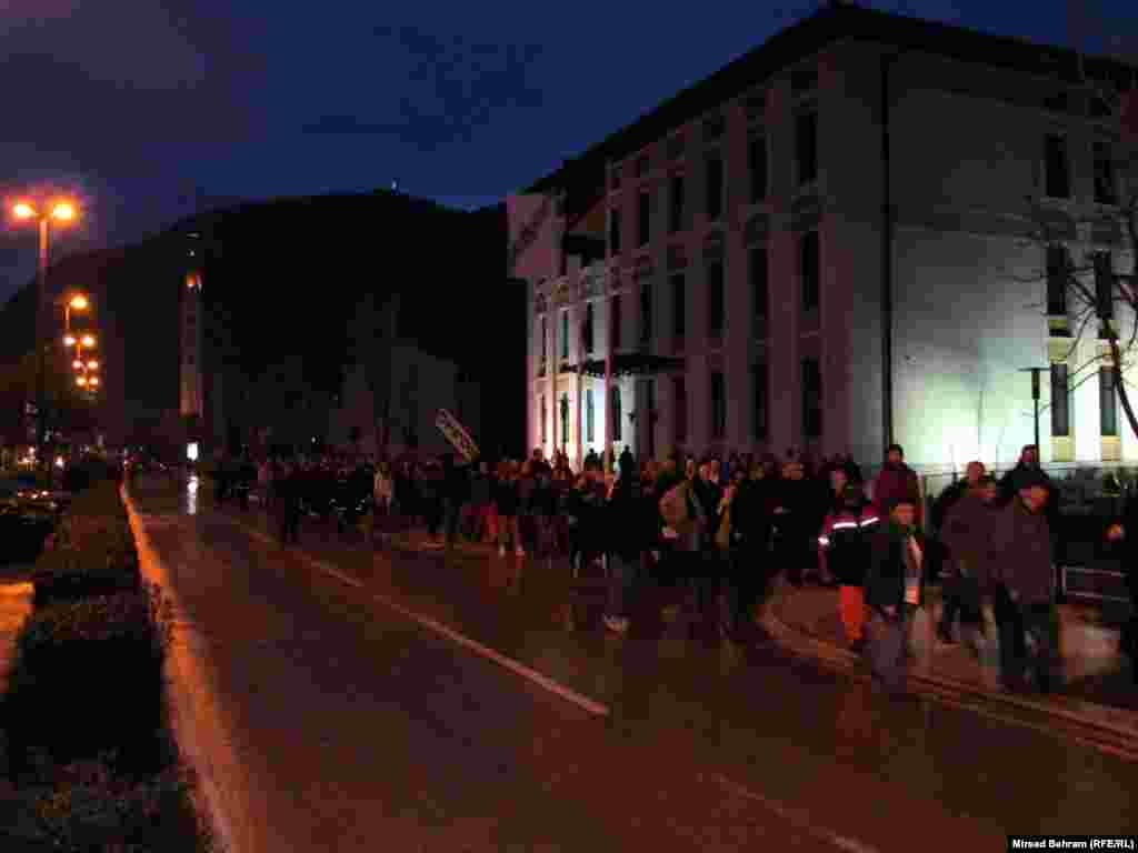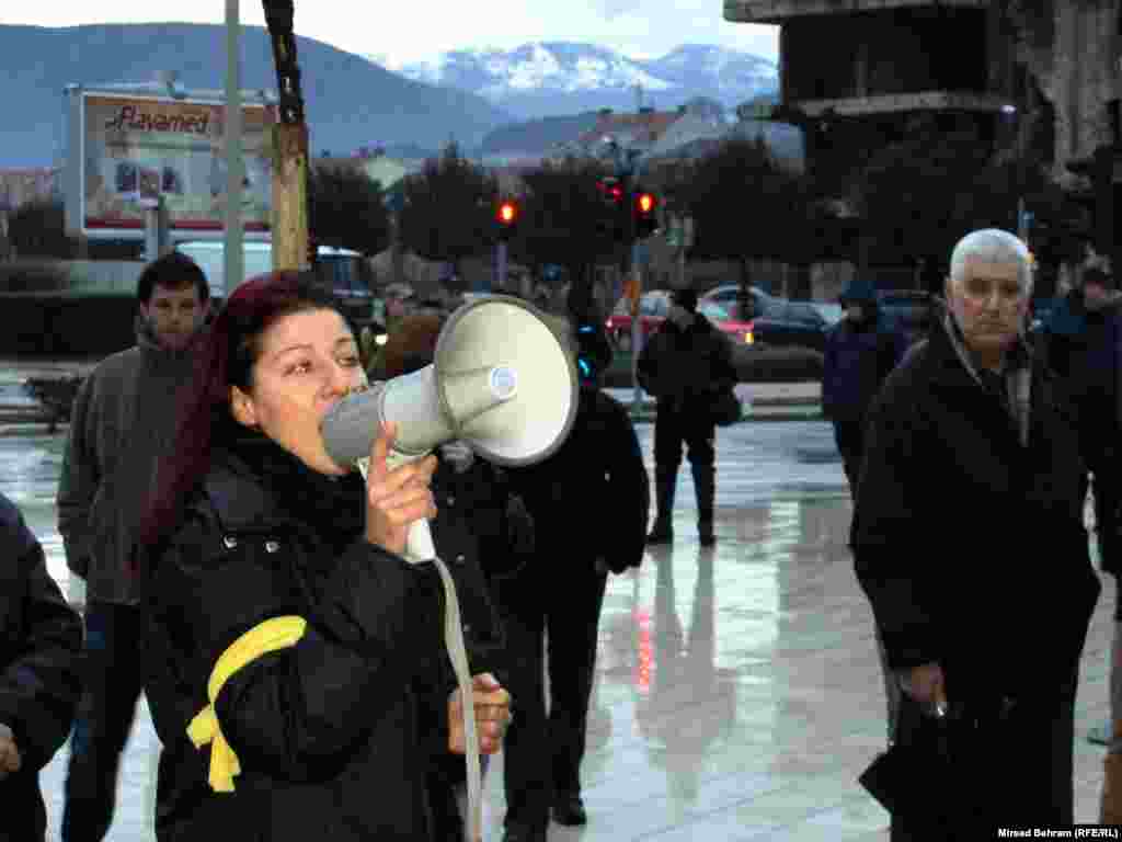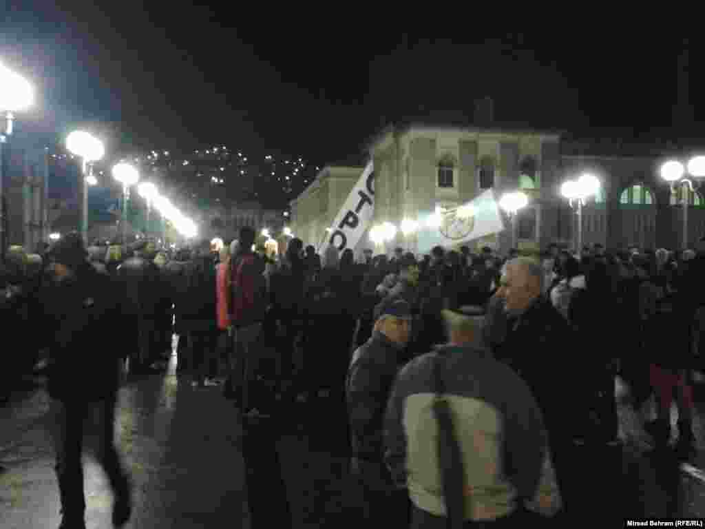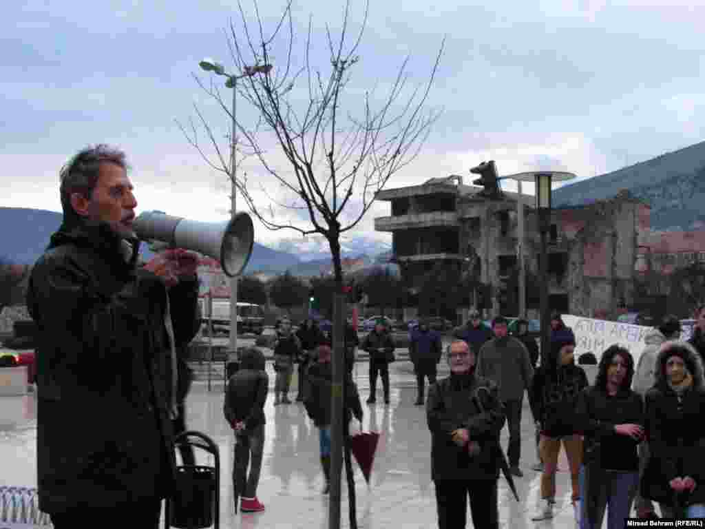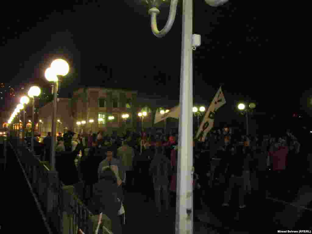 Protesti u Mostaru u utorak uveče na momente su bili na ivici većeg incidenta. Nakon što je policija prepriječila prolaz učesnicima protesta da prođu ka Trgu Hrvatskih velikana, oni su i pokušali da izvedu protestnu šetnju u više pravaca, ali su im jake snage policije to onemogućile. FOTO: Mirsad Behram